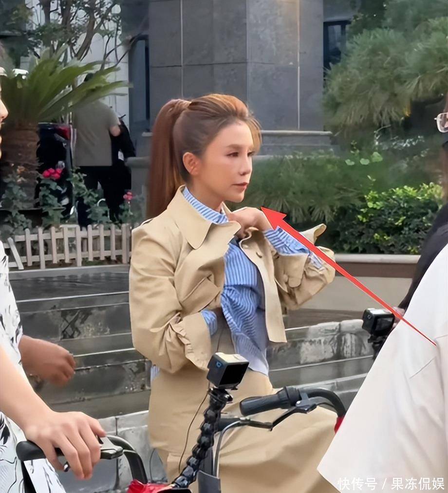 傍边的鞠萍衣着绿色防晒服,肚子把上衣撑得圆滔滔,通盘这个词东谈主比夙昔胖了一圈。