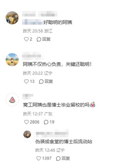 记者了解到,故事的主东谈主公是大连理工大学博留食堂的杨大姨(假名)。网友们戏称出此妙招的杨大姨是“博士毕业”——固然杨大姨不是博士毕业,但杨大姨的一个犬子还是从北大博士毕业,另一个犬子正在大工攻读博士学位。