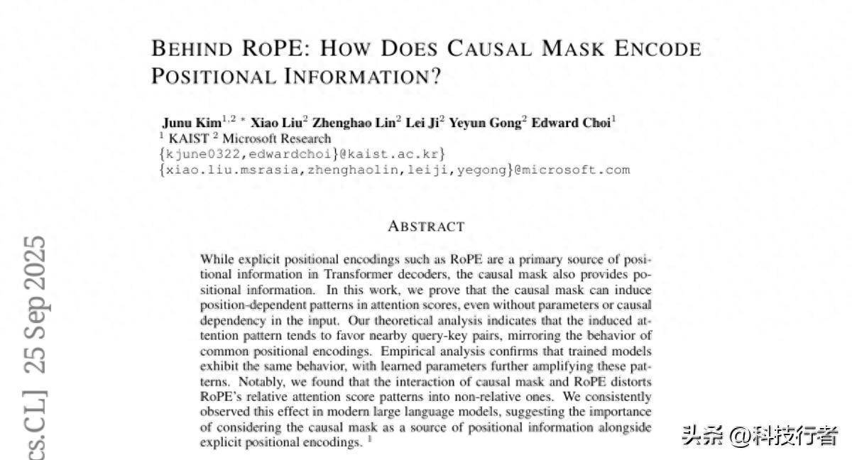 有计划的最令东说念主不测的发现来自对当代大型讲话模子的分析。当今的主流模子常常同期使用RoPE位置编码和因果掩码,就像同期装备了GPS和指南针的导航系统。有计划东说念主员深嗜这两个系统会如何相互作用。