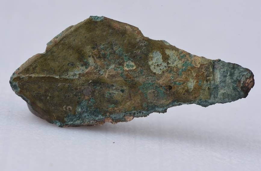 这次商榷的两件青铜器物均出土于屈家岭文化晚期地层,青铜镞形制与同时石镞一致,残长3.66厘米,横截面呈扁平状,可见锻造萍踪;青铜棒形器为亚圆柱形残件,长6.45厘米,器身存在清醒锻造孔隙。